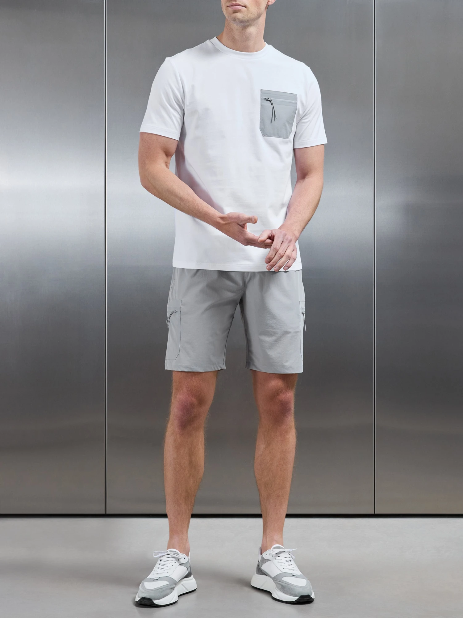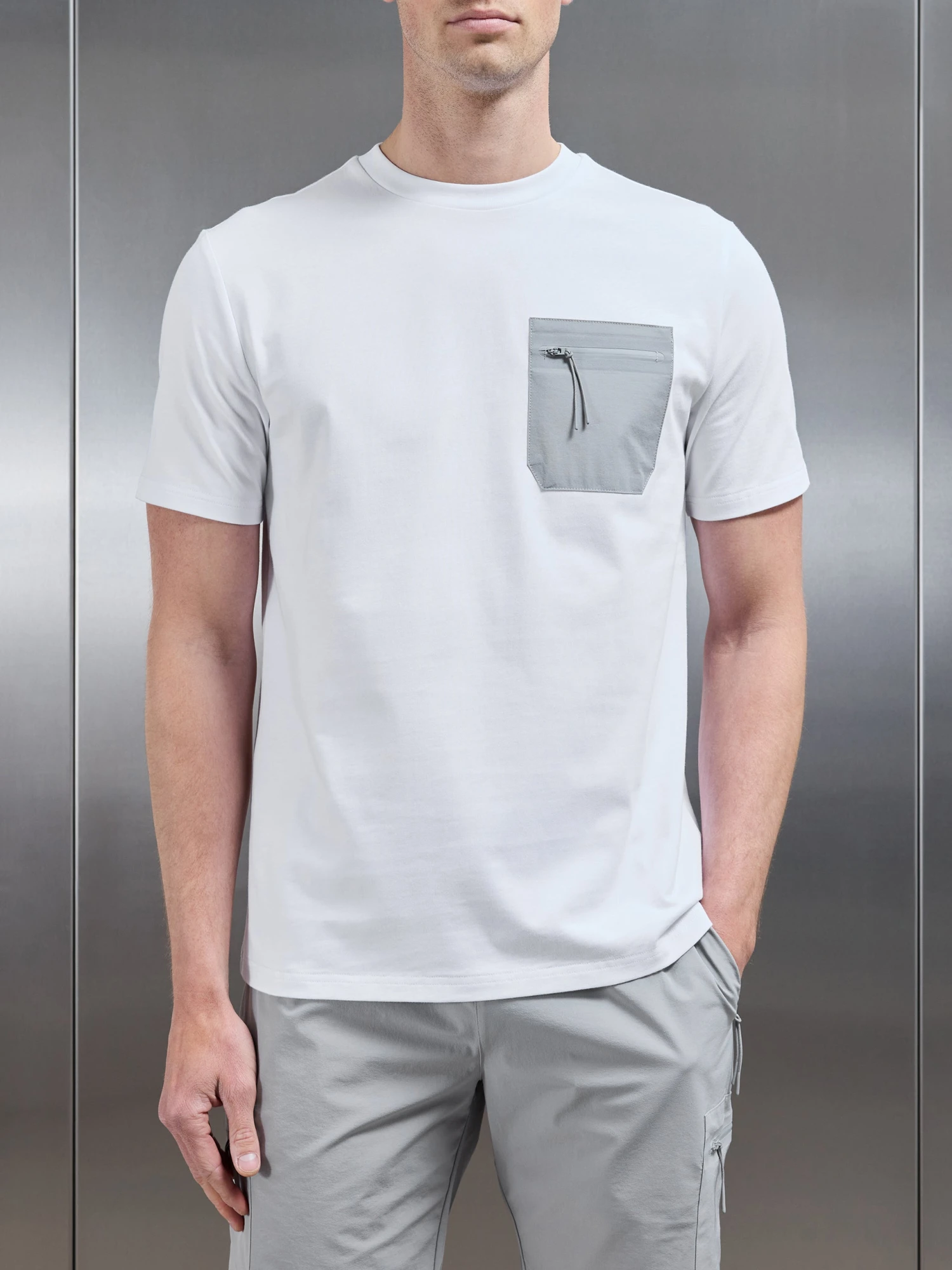- Contrast ripstop chest pocket with zip fastening and tie attachment