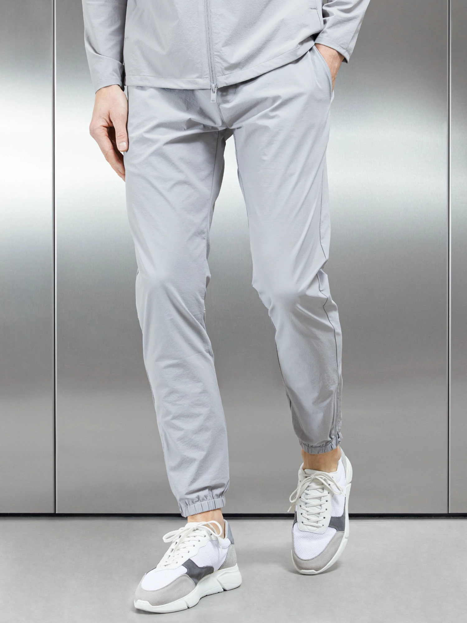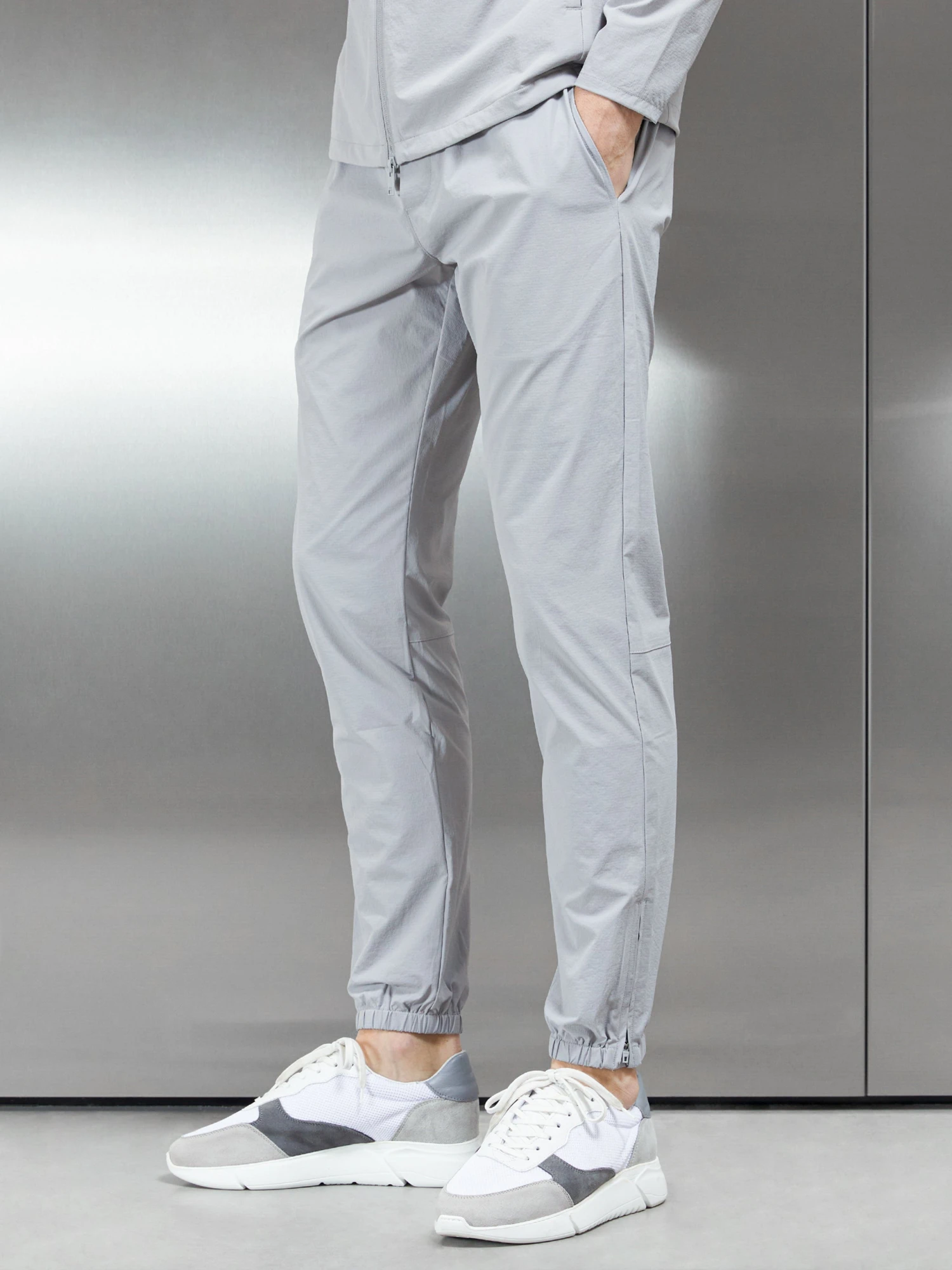 - Cuffed trouser hemline with concealed ankle zipper