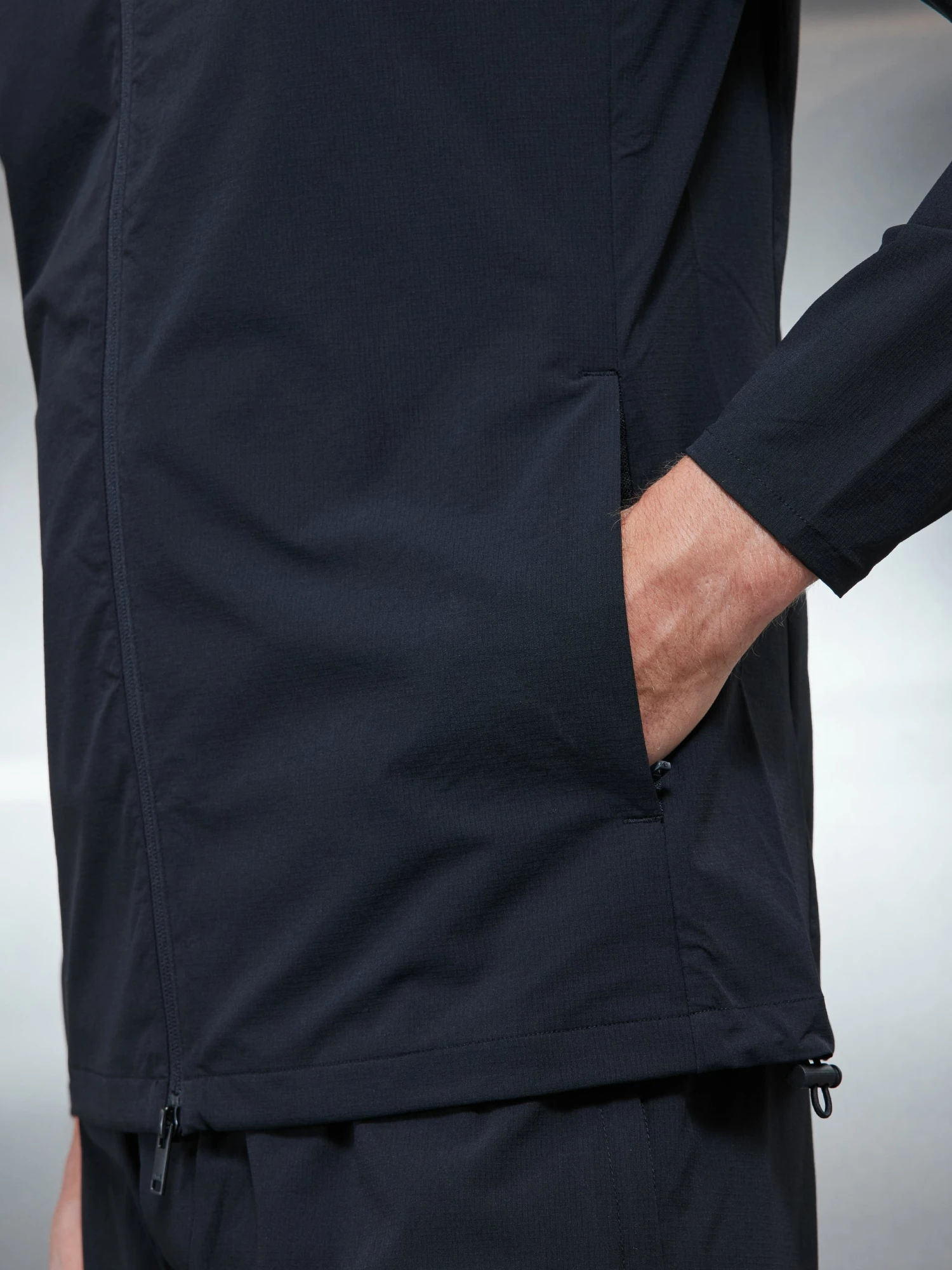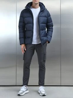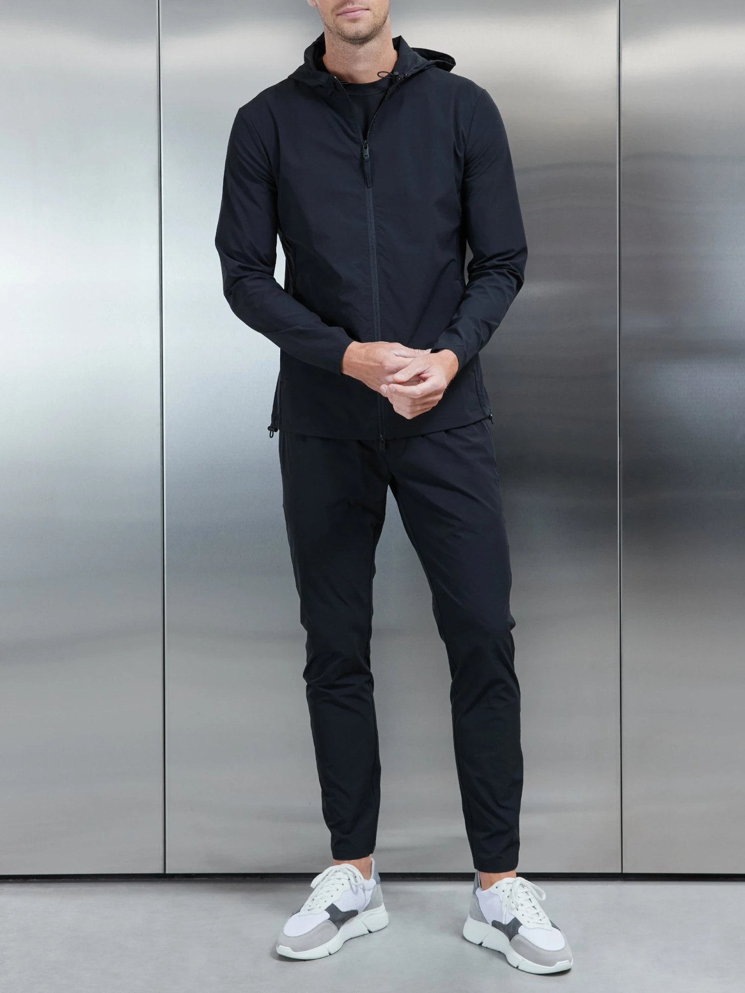 - Fixed hood with internal adjustable elastic drawcord pulls