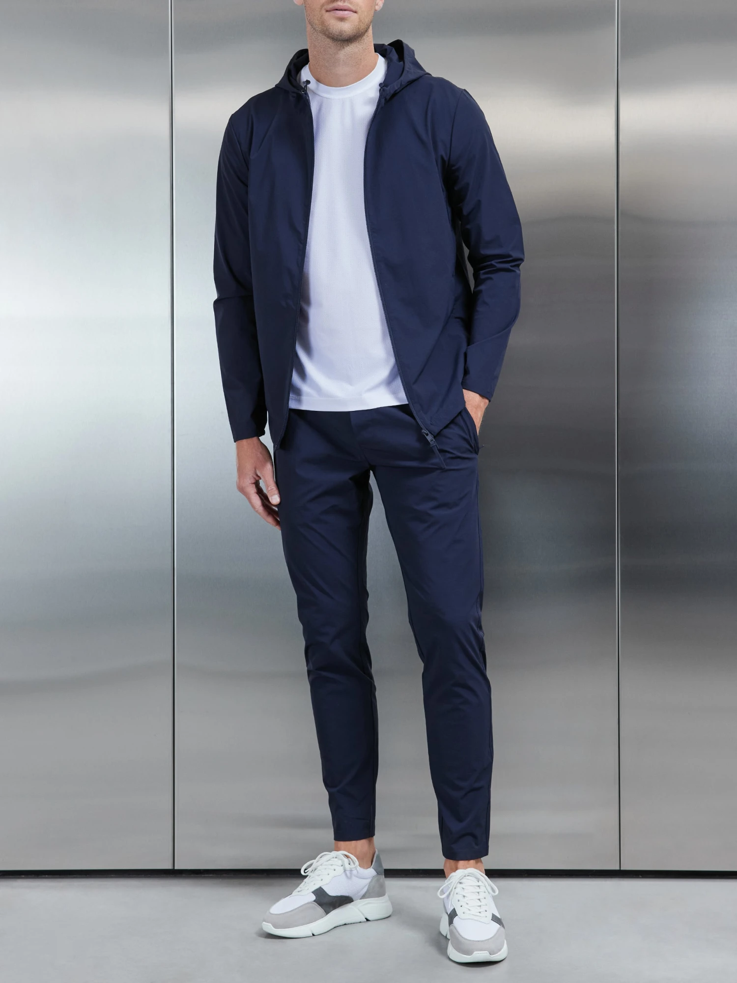 - Fixed hood with internal adjustable elastic drawcord pulls