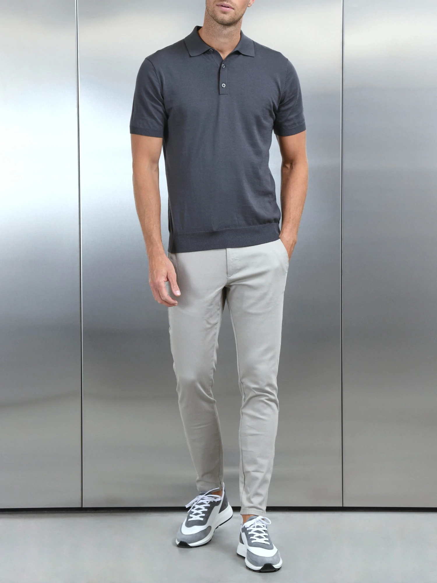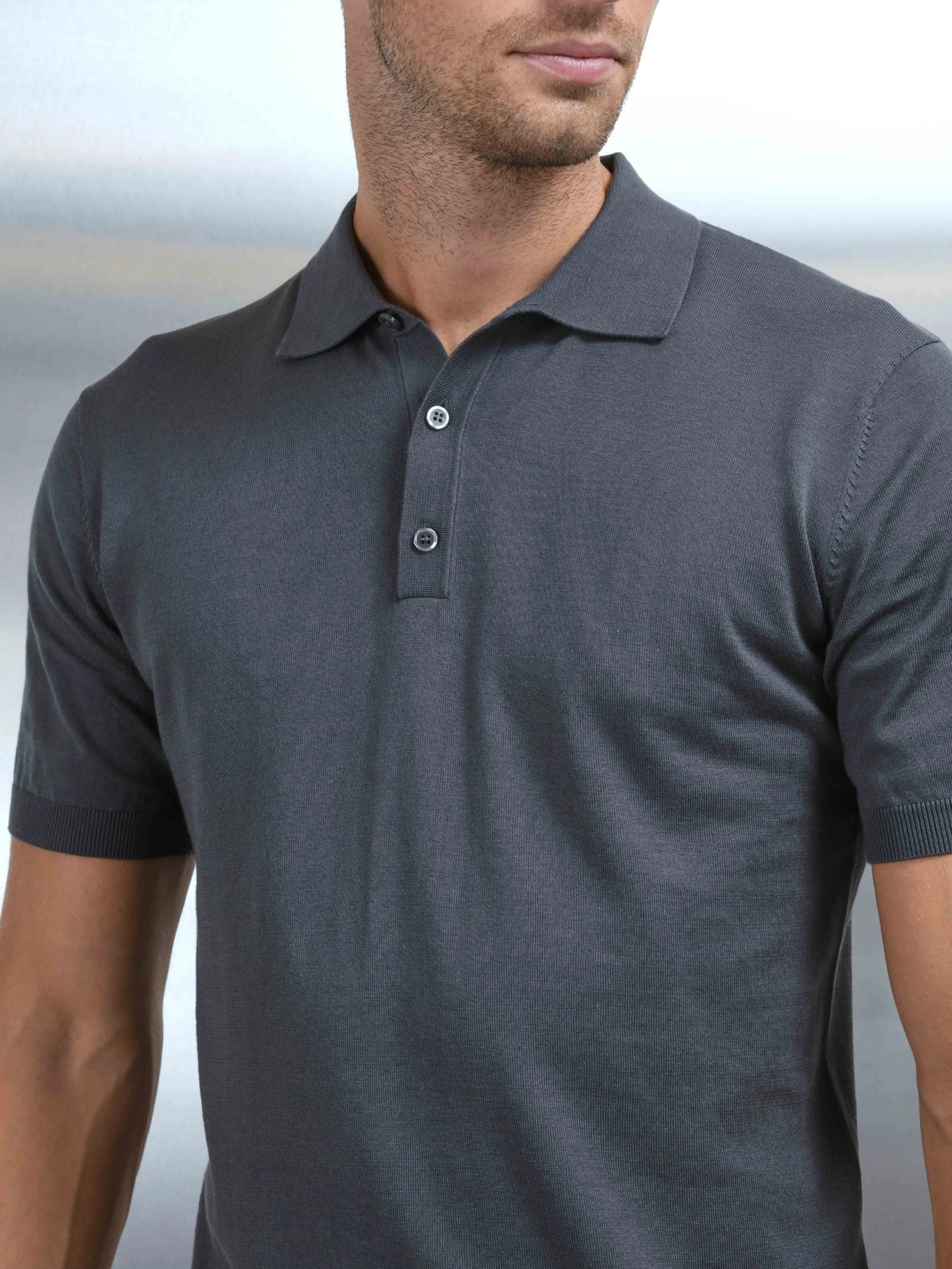 Cotton And Silk Polo Shirt In Charcoal