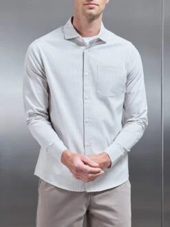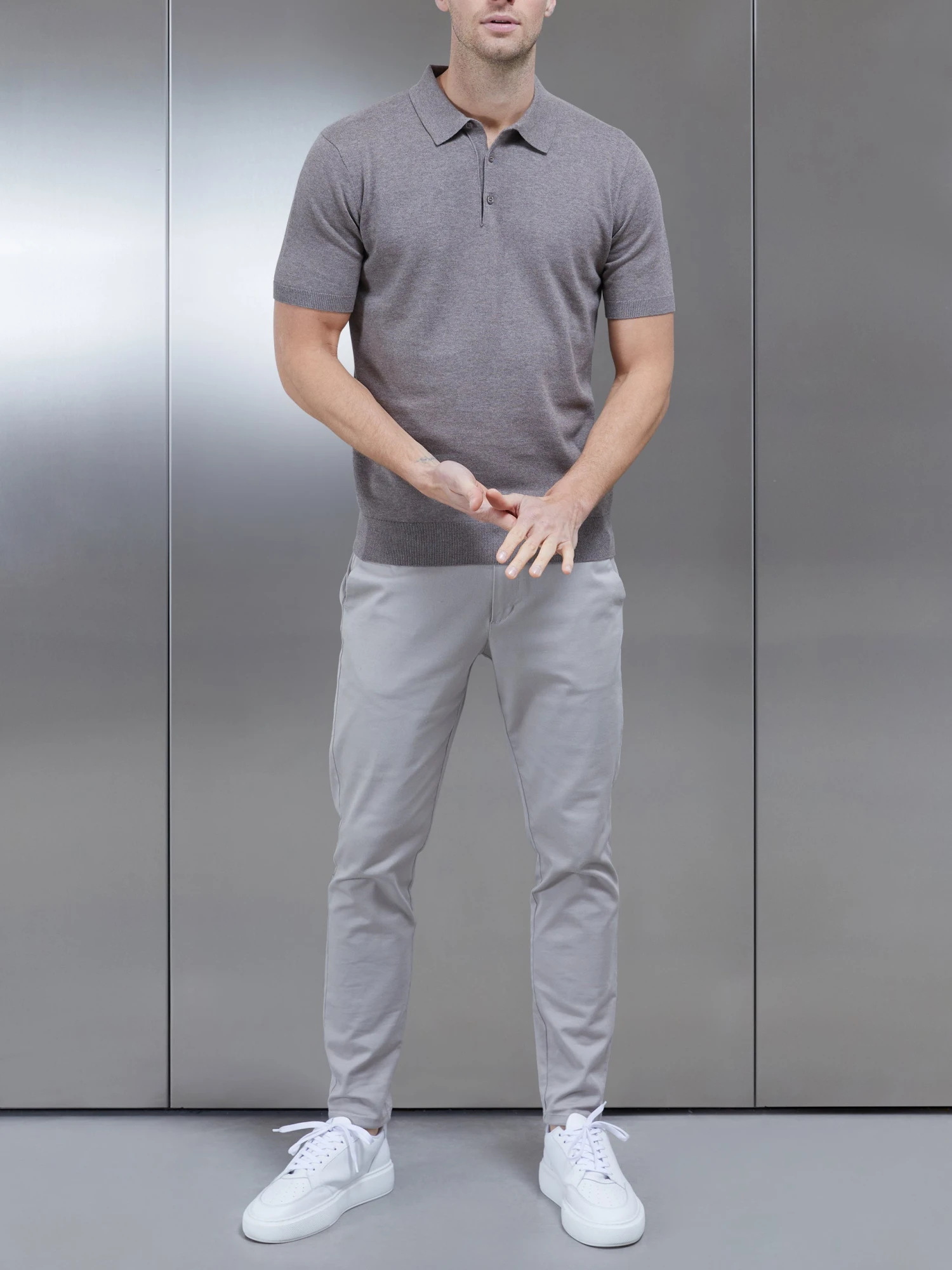 Cotton Knitted Button Polo Shirt In Taupe
