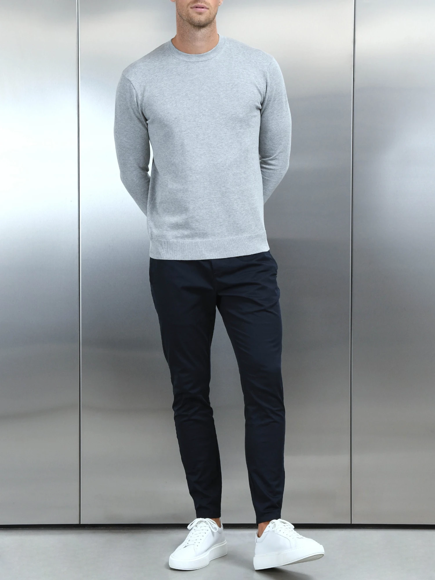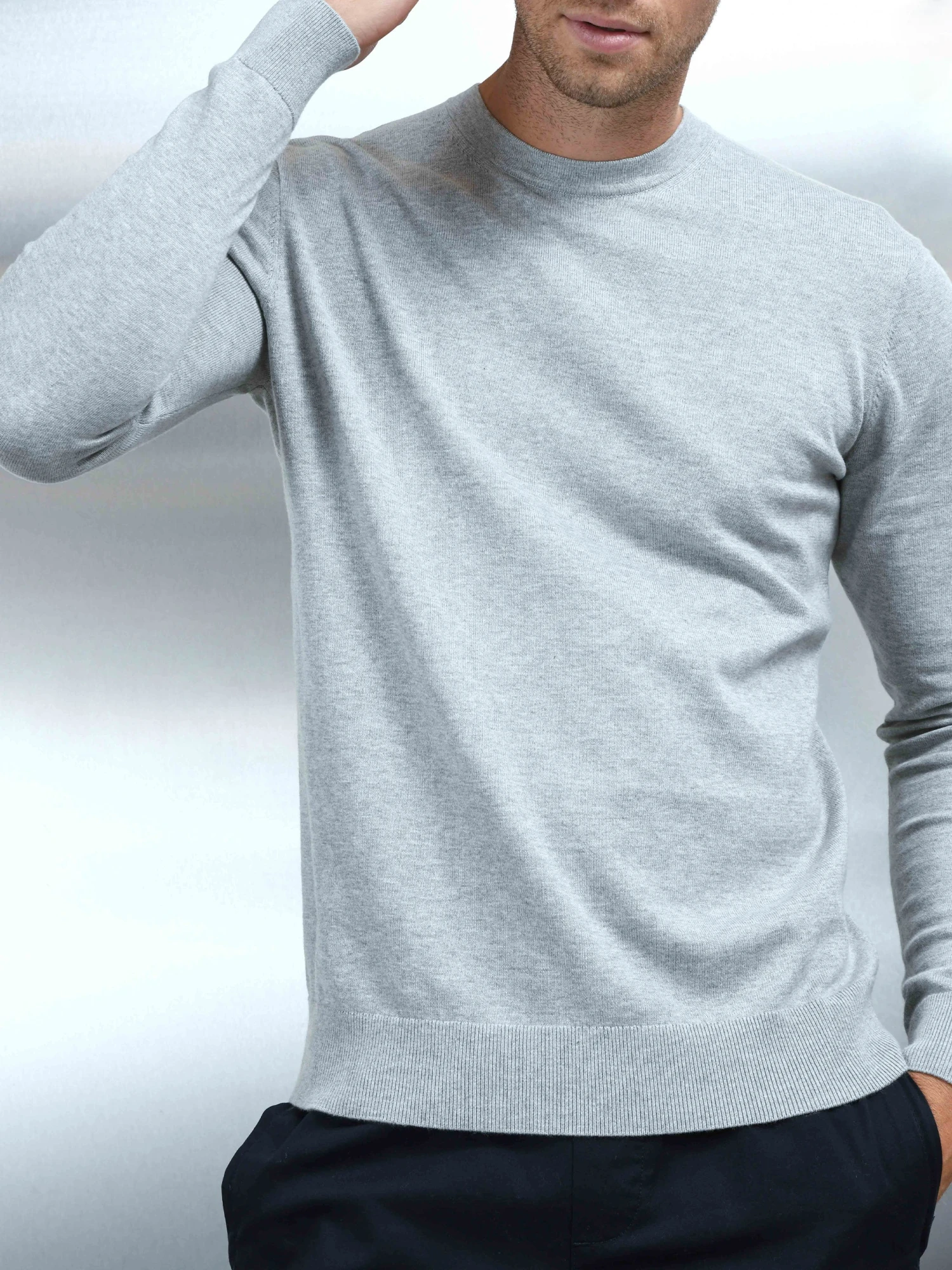 Cotton Knitted Crew Neck Sweatshirt In Marl Grey