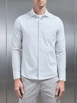 - Long set-in sleeves