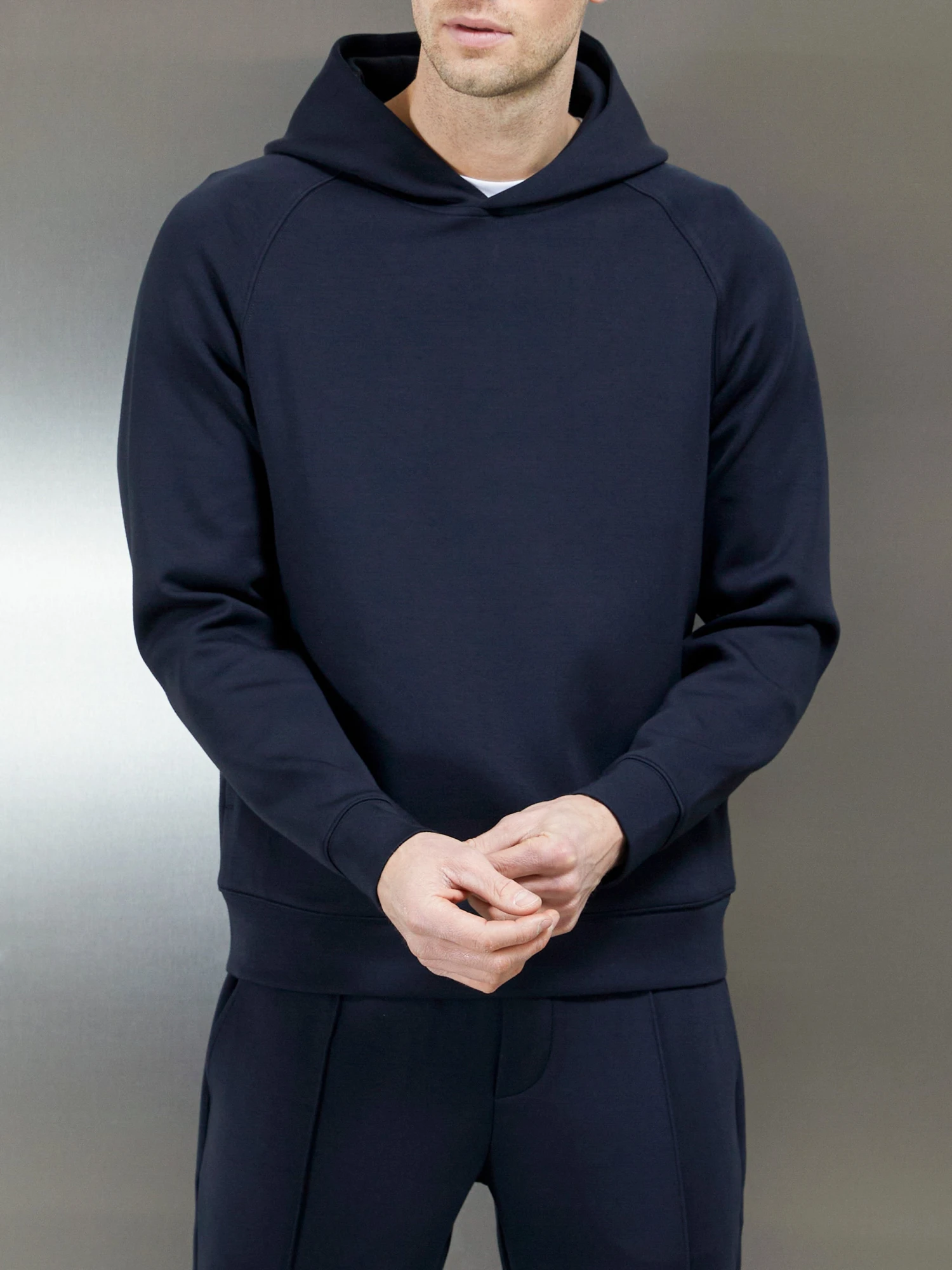 - Long raglan sleeves