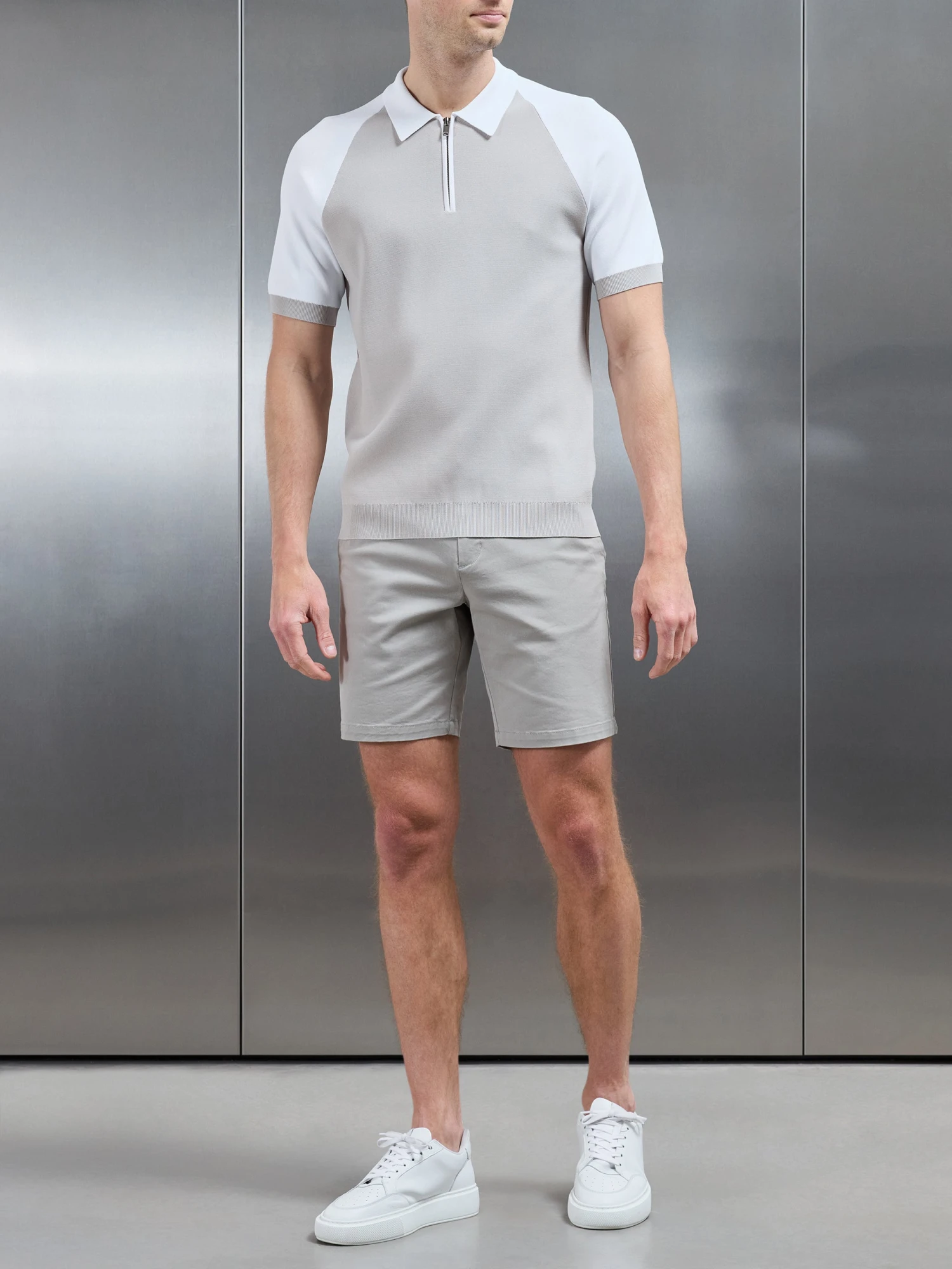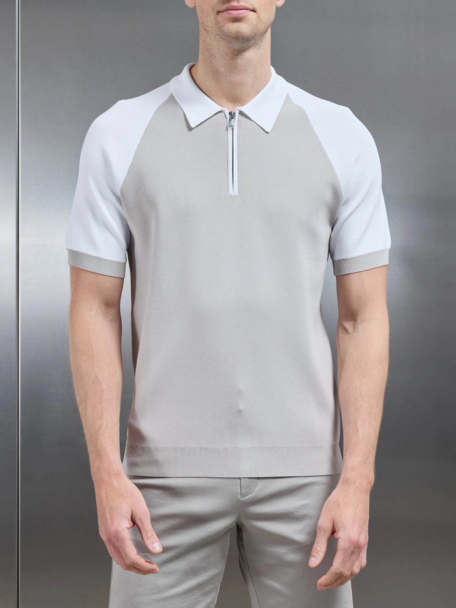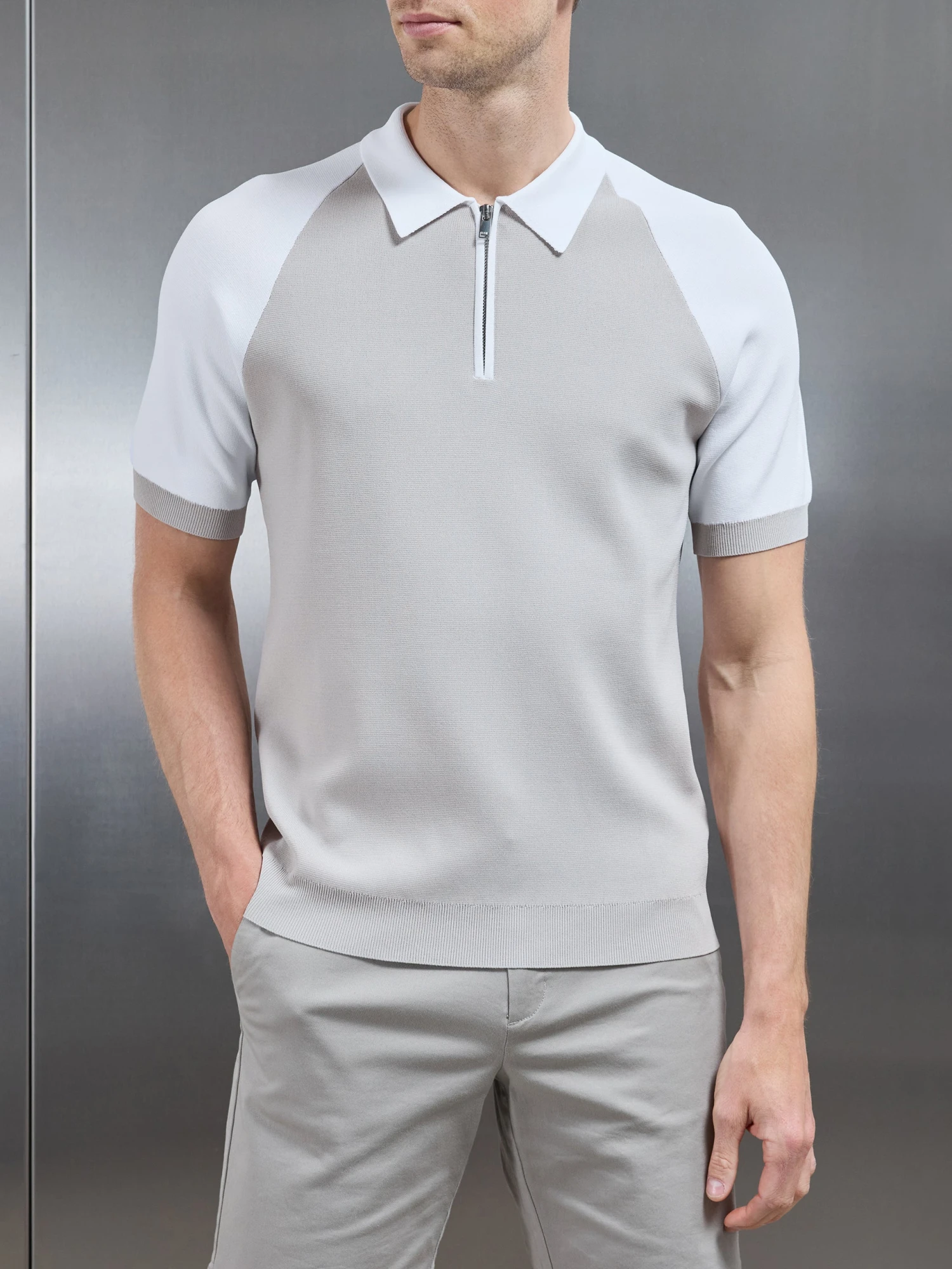 - Slim fit knitted polo shirt with zip fastening