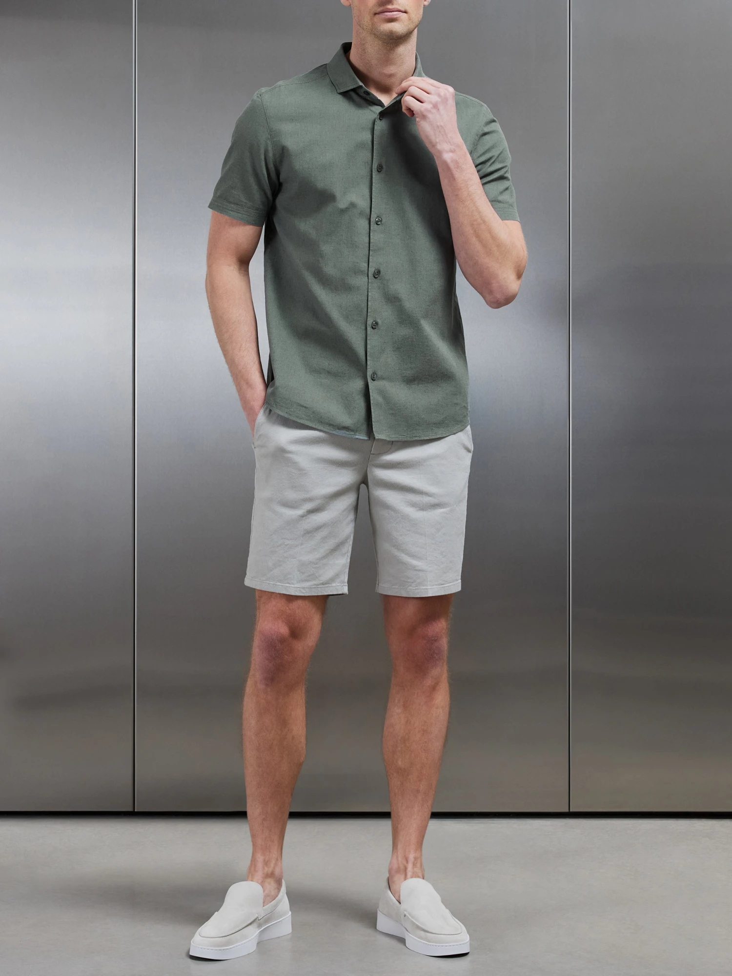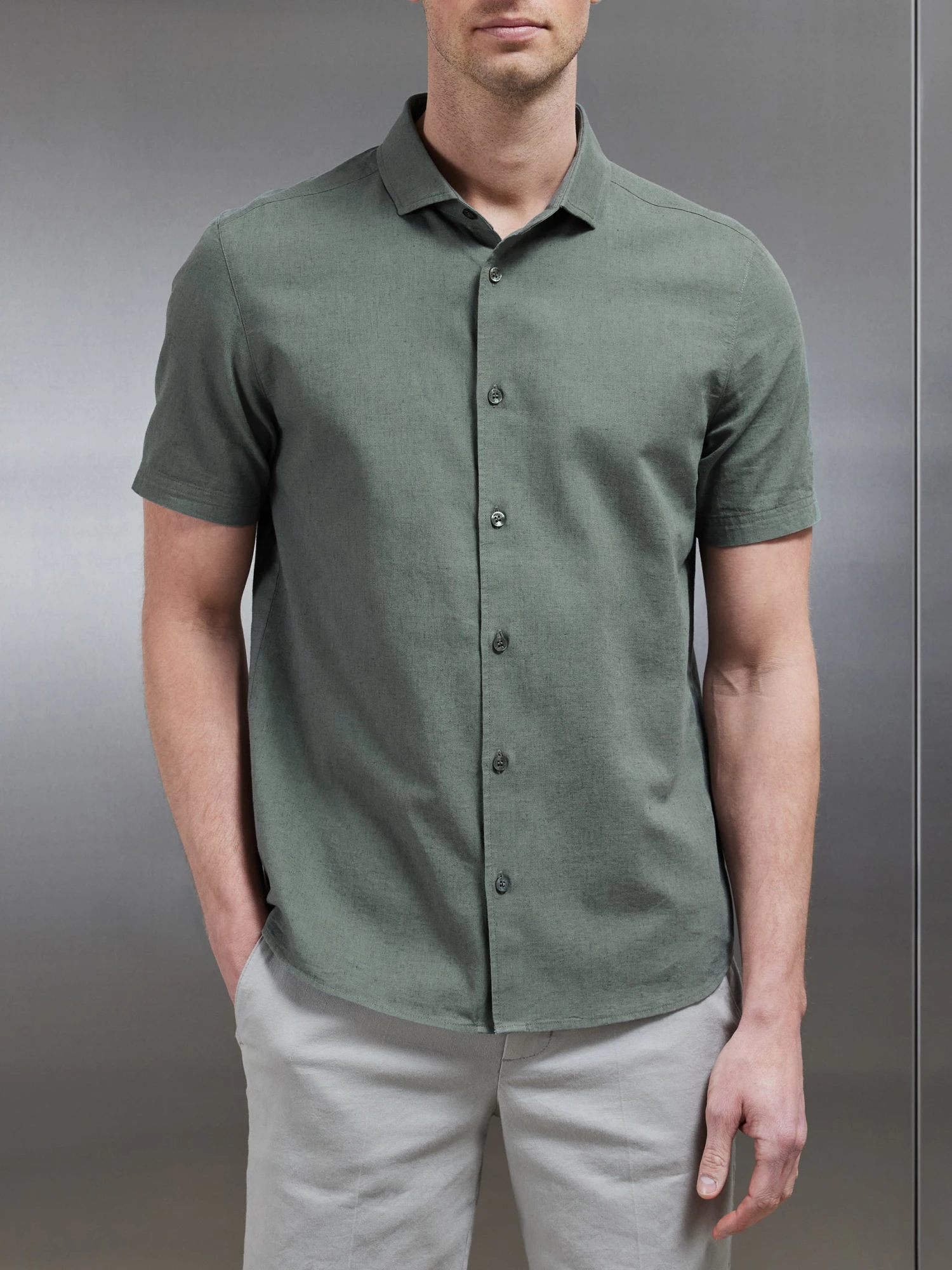 - Slim fit shirt with cutaway collar and button fastening
