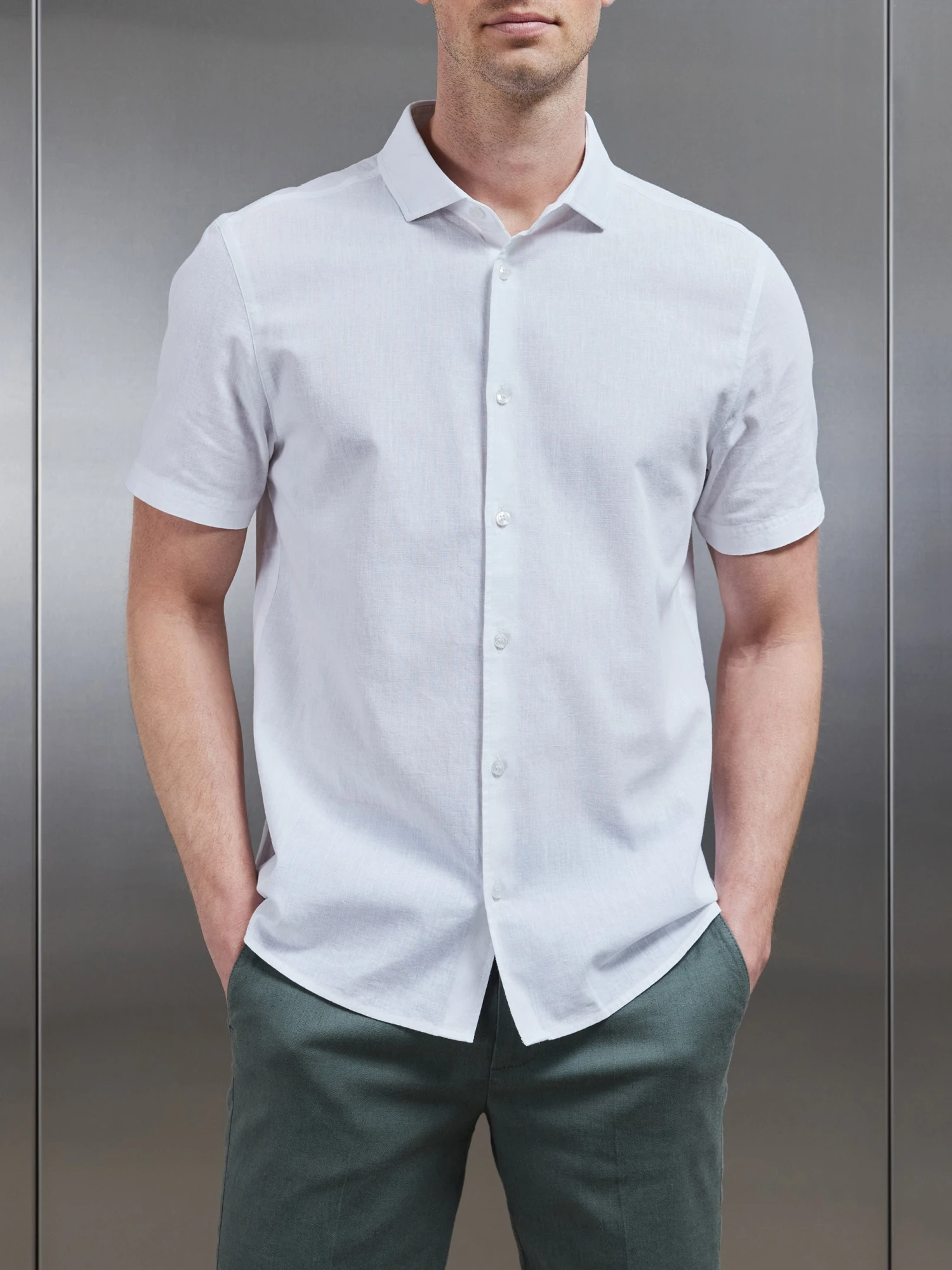 Linen Short Sleeve Cutaway Collar Shirt In White