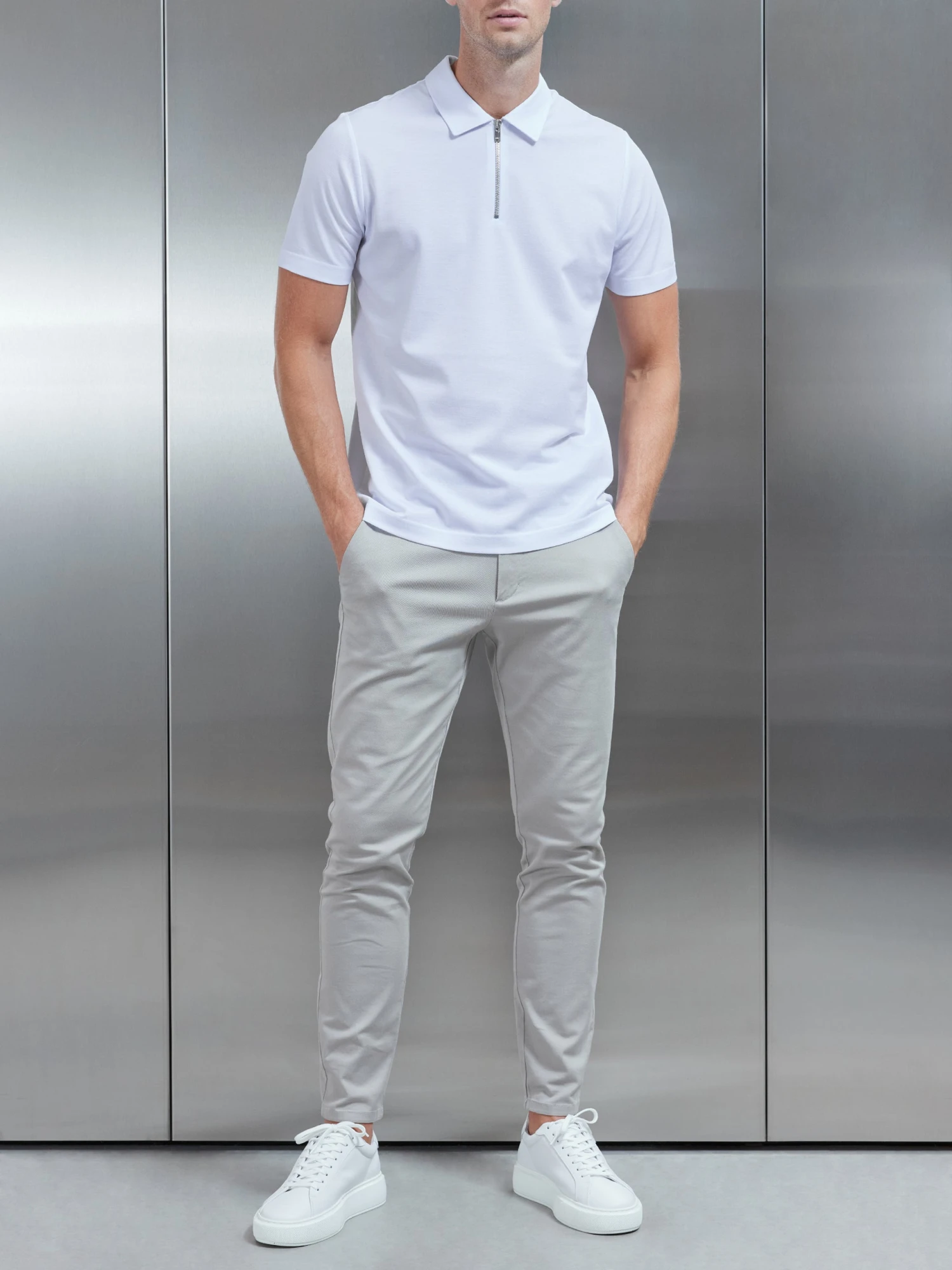 - High shine silver half zip neckline with ARNE branded zip puller