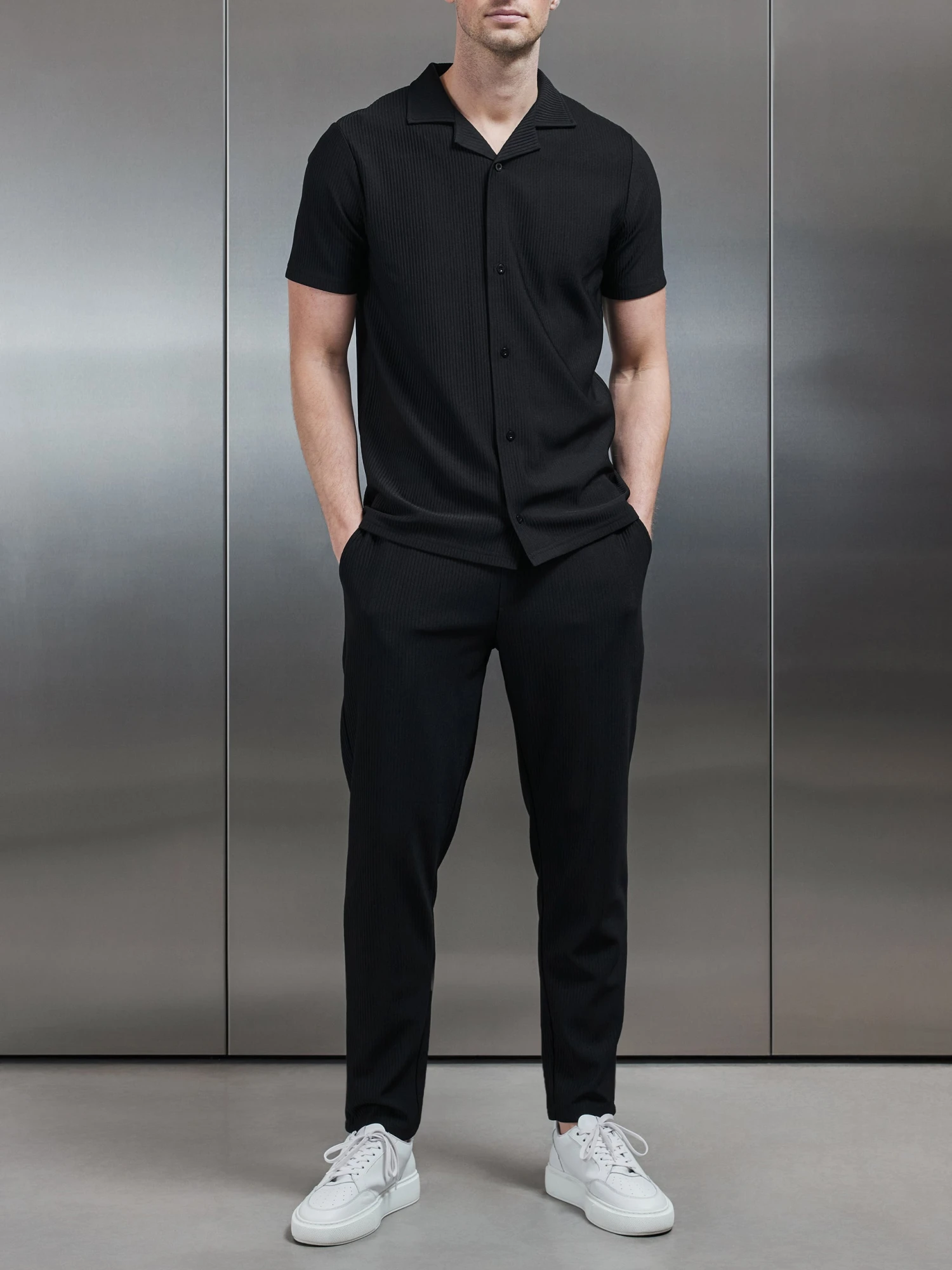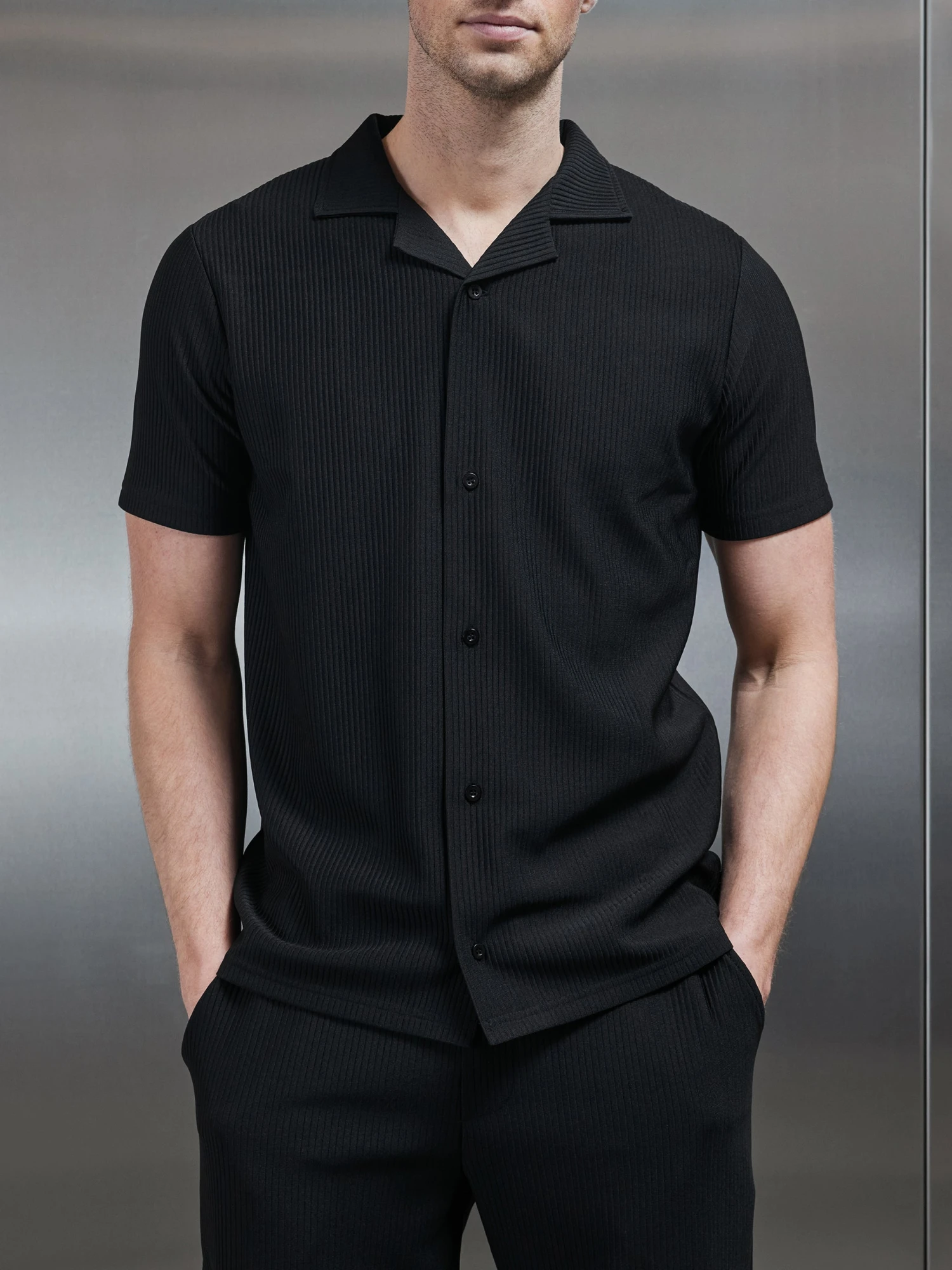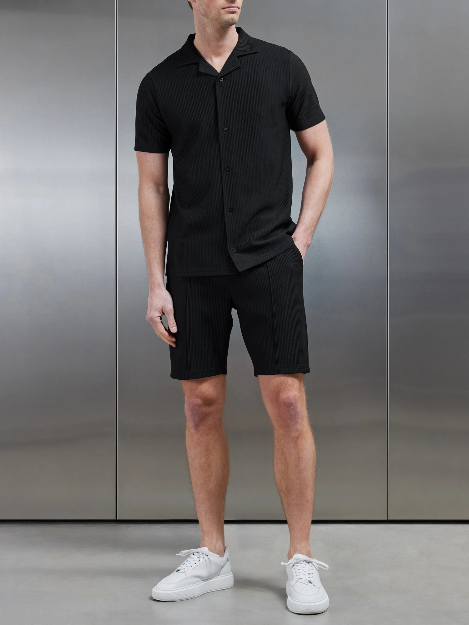 Pleated Revere Collar Shirt In Black