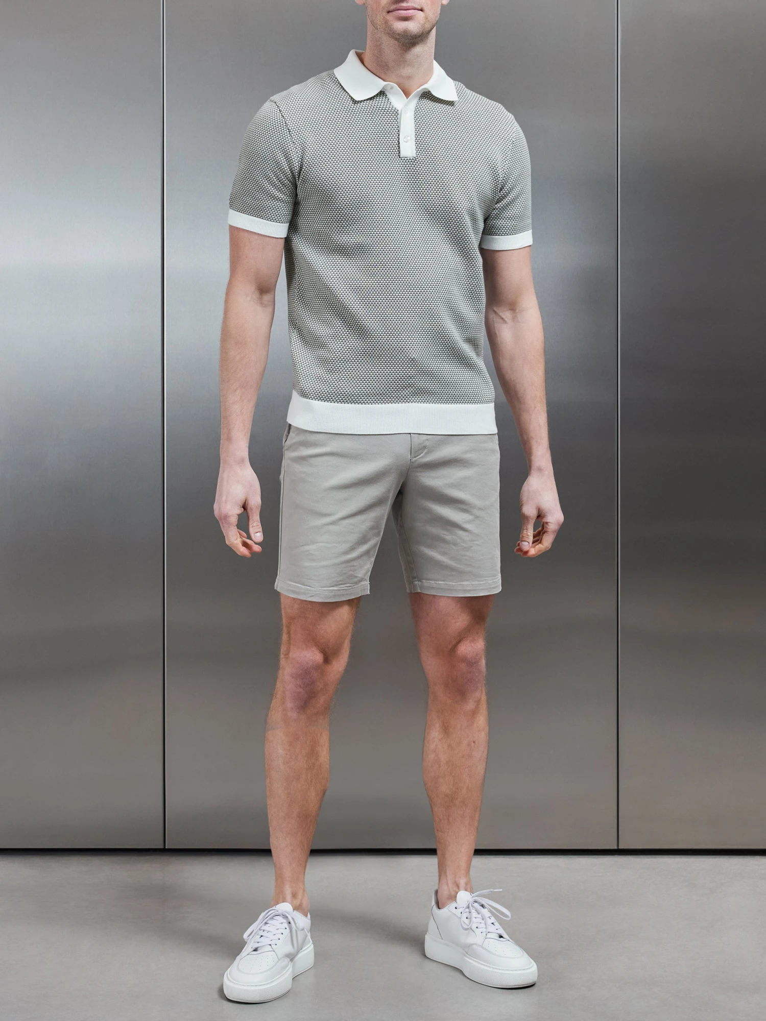 Roma Knitted Polo Shirt In Sage
