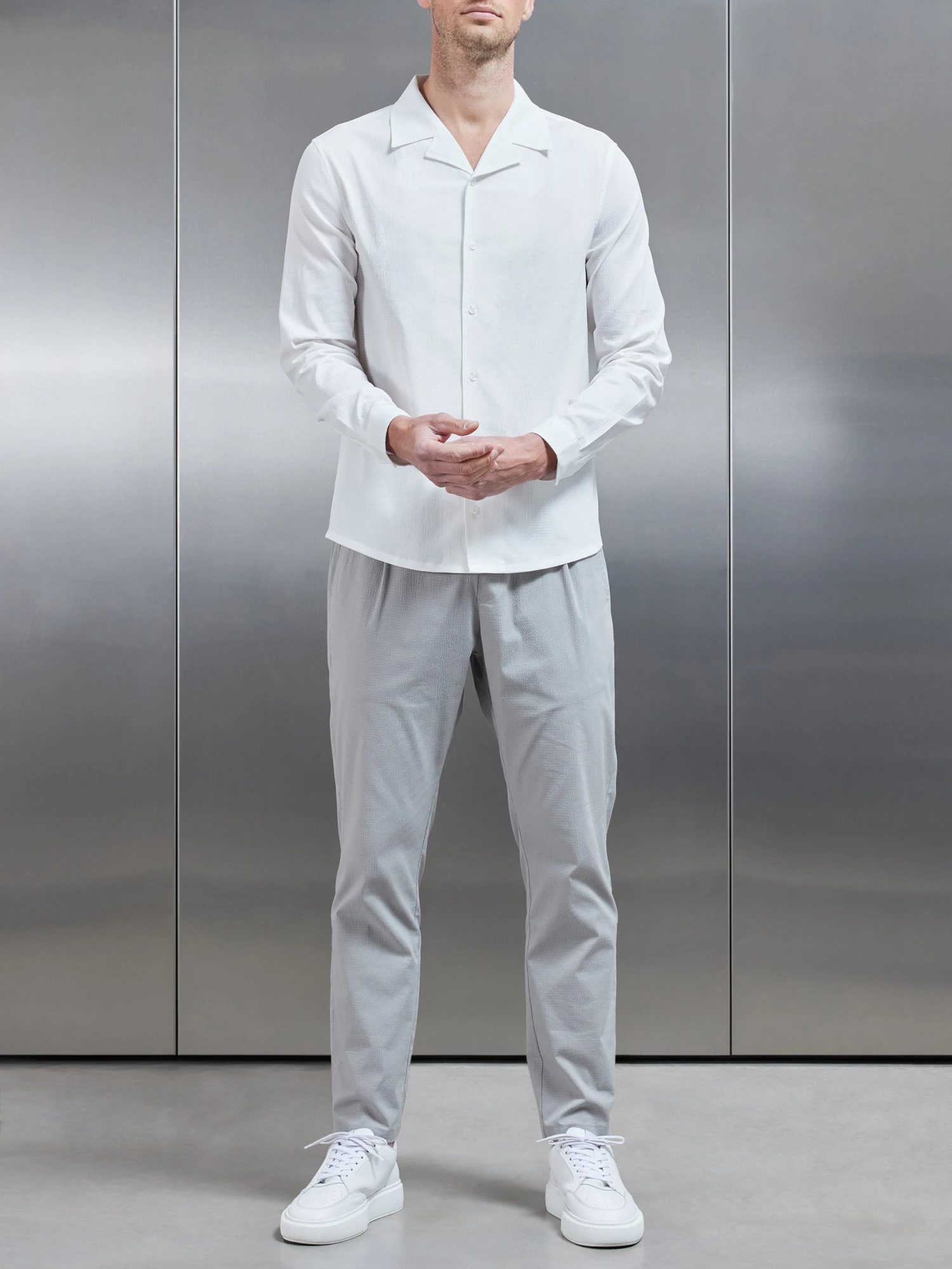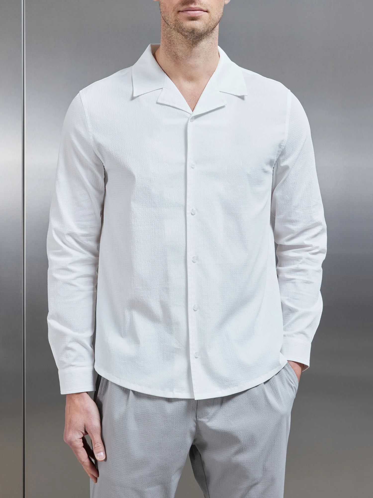 - Slim fit shirt with revere collar neckline