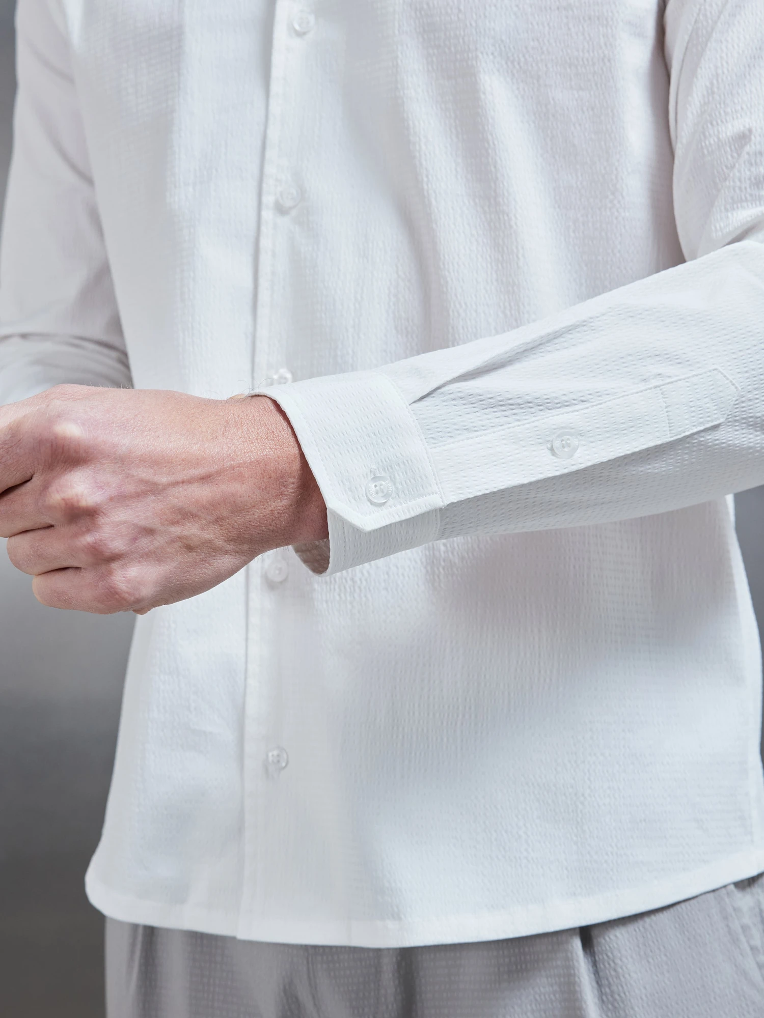 - Lightweight textured seersucker fabrication