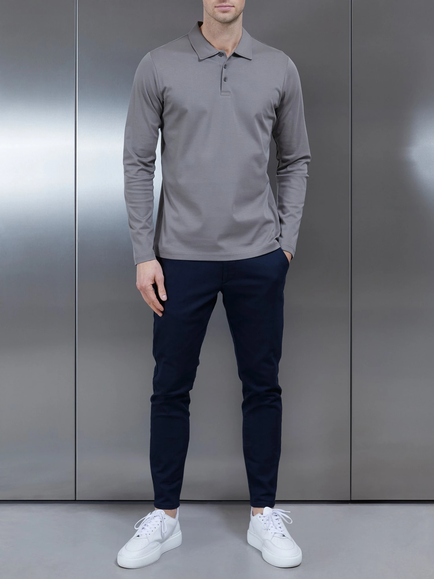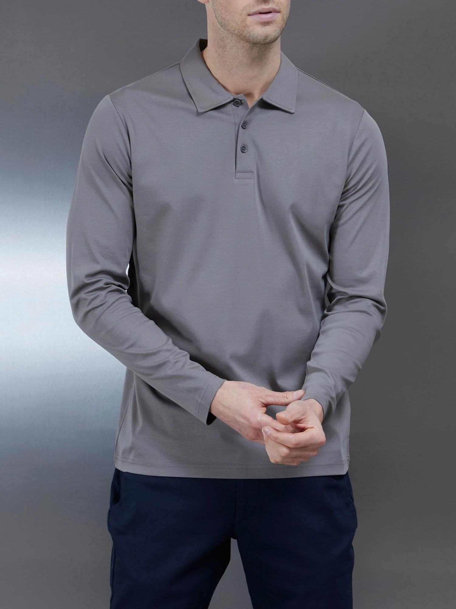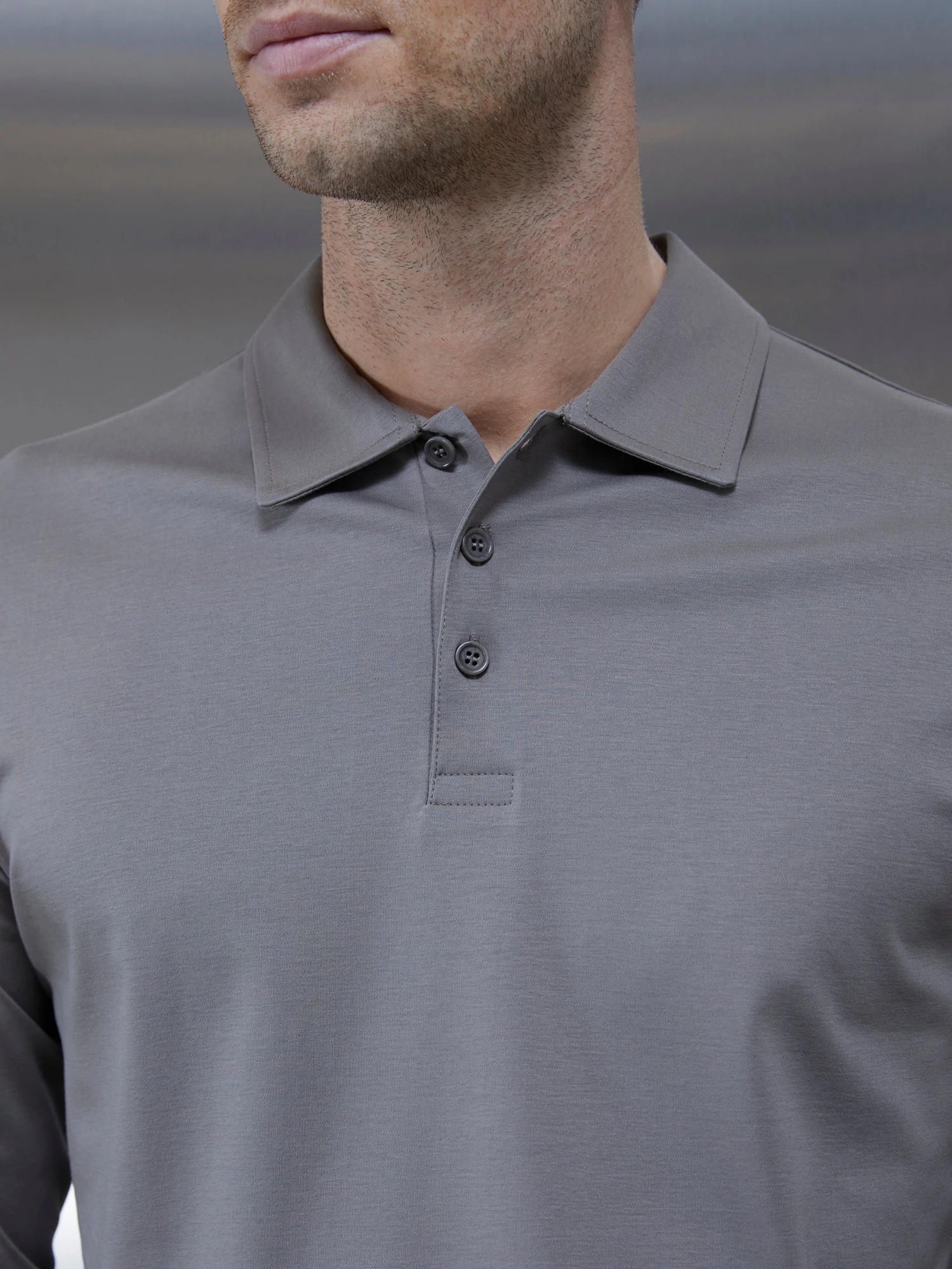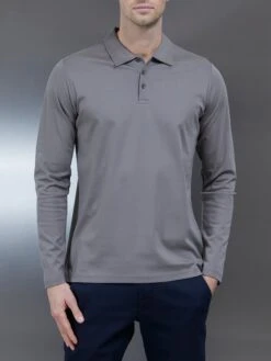 Supima Cotton Long Sleeve Button Polo Shirt In Dark Stone