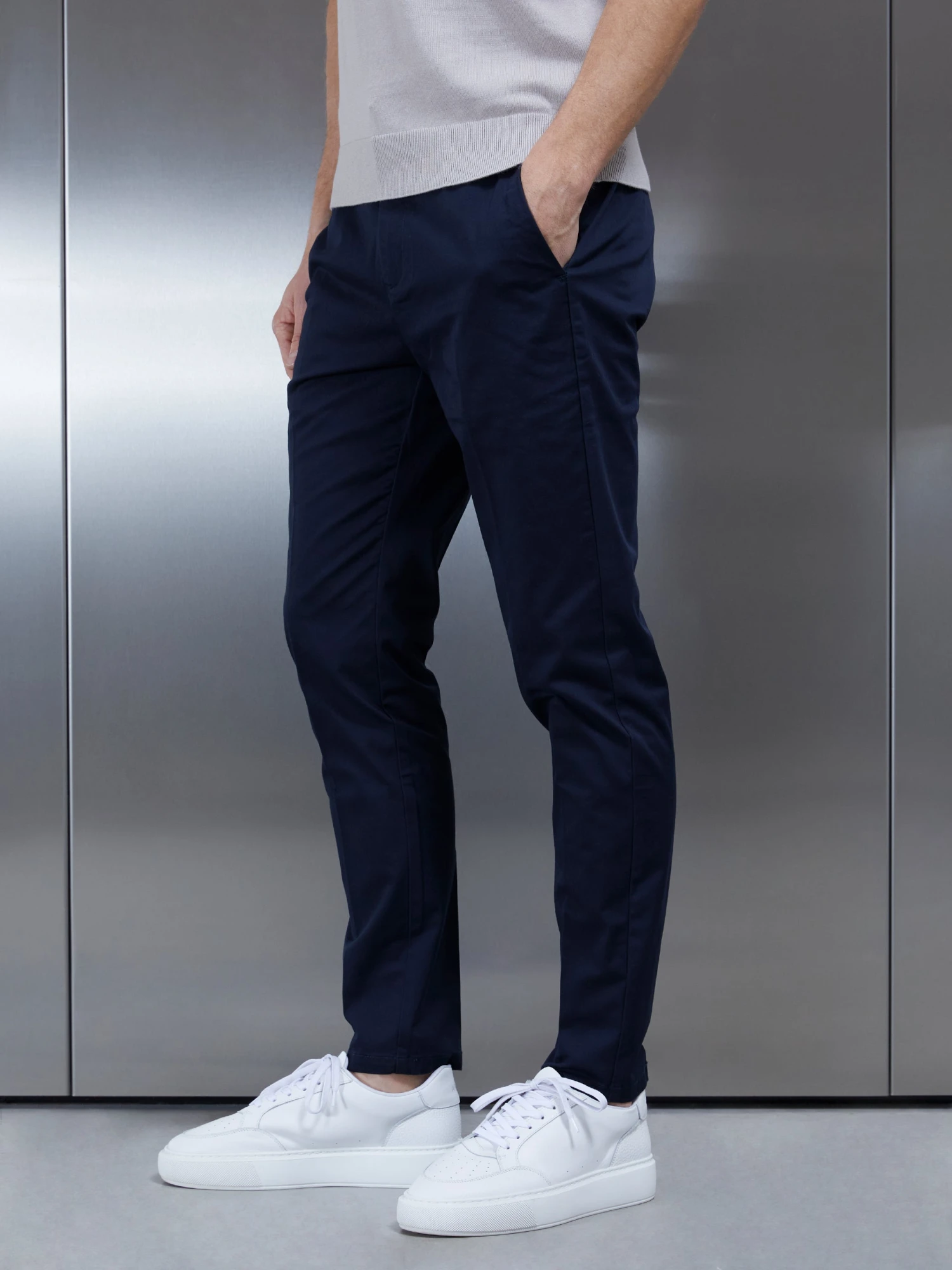 Tailored Cotton Side Adjuster Chino Trouser In Navy